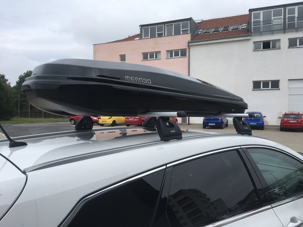 Montáž střešního boxu Menabo Diamond 500 na vozidlo zakázníka v dílně Filson Store Praha 10 Uhříněves