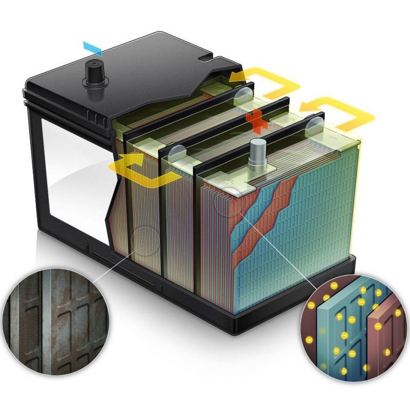 Autobaterie Aroso Ultra Dynamic (přesný technický výraz je akumulátor, což je zařízení pro uskladnění elektrické energie) je zařízení sestávající z několika identických, vzájemně propojených galvanických článků, které jsou schopné ukládat chemickou energii. Napětí je vytvořený vždy, když se v elektrolytu nacházejí dva různé kovy (galvanický článek). Toto napětí závisí na typu kovu (elektrochemická řada napětí), koncentraci roztoku (elektrolytu) a teplotě. V případě kyselino-olověných baterií jsou kladné elektrody vyrobeny z oxidu olova a záporné elektrody z olova. Zředěná kyselina sírová se používá jako elektrolyt a poskytuje jmenovité napětí 2 Volty na buňku. Proto musí být ve 12 V baterii zapojeno šest článků do série. V závislosti na tom, zda lze baterii dobít nebo ne, rozlišujeme mezi primárními články, které mohou být vybité pouze jednou a sekundárními články, které lze dobíjet mnohokrát během své životnosti.