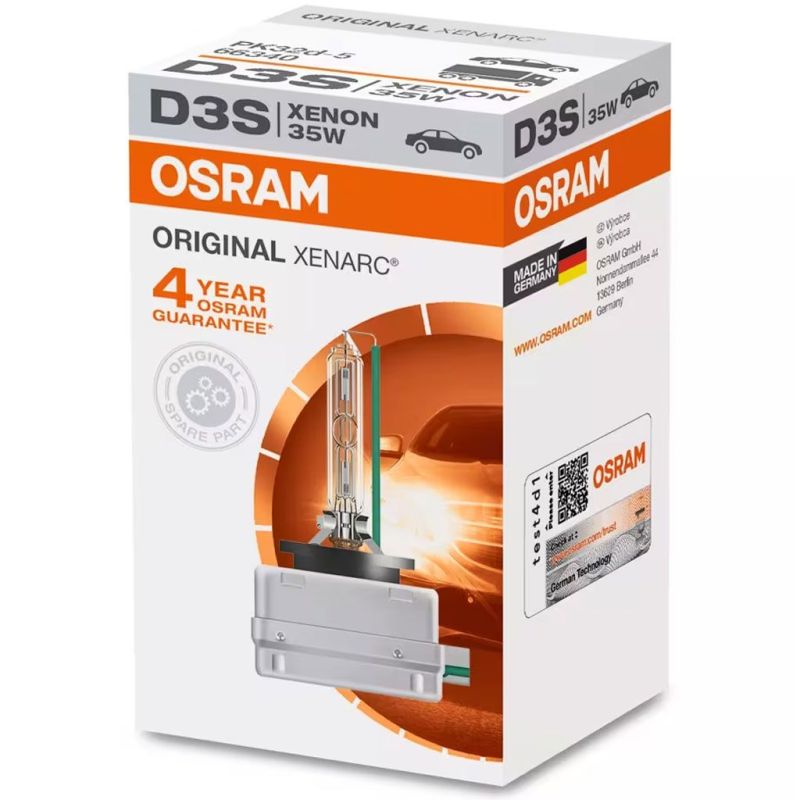 OSRAM XENARC® ORIGINAL - kvalita nových originálních dílů od renomovaného německého výrobce Osram. Úspěšně používán v milionech nových automobilů od renomovaných výrobců, standardní výchozí vybavení nového vozidla nebo originální náhradní díl. Originální náhradní díly, které výrazně přesahují všechny minimální normy a požadavky EHK a EU. Prémiová kvalita vyráběná přímo v Německu. Xenonová výbojka D3S od renomovaného německého výrobce Osram v originální kvalitě prvovýroby pro automobilky, jedná se o západoevropskou edici s prodlouženou životností, nikoli o východoevropskou edici. UV filtr pro dokonalou ochranu parabol světlometů před oxidací. Patice PK32d-5, svítivost standardní, dosvit standardní, barva světla standardní, životnost standardní, odolnost vůči otřesům standardní, výkon 35W, teplota světla 4300 Kelvinů, světelný tok 3200 lm.