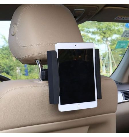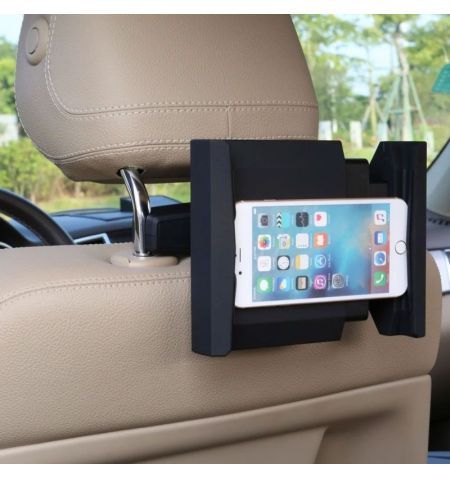 pro tablety a telefony, úhlopříčka displeje 4 až 12 palců, maximální šířka až 23cm, upevnění ke konzoli opěrky hlavy, pogumovaná konstrukce