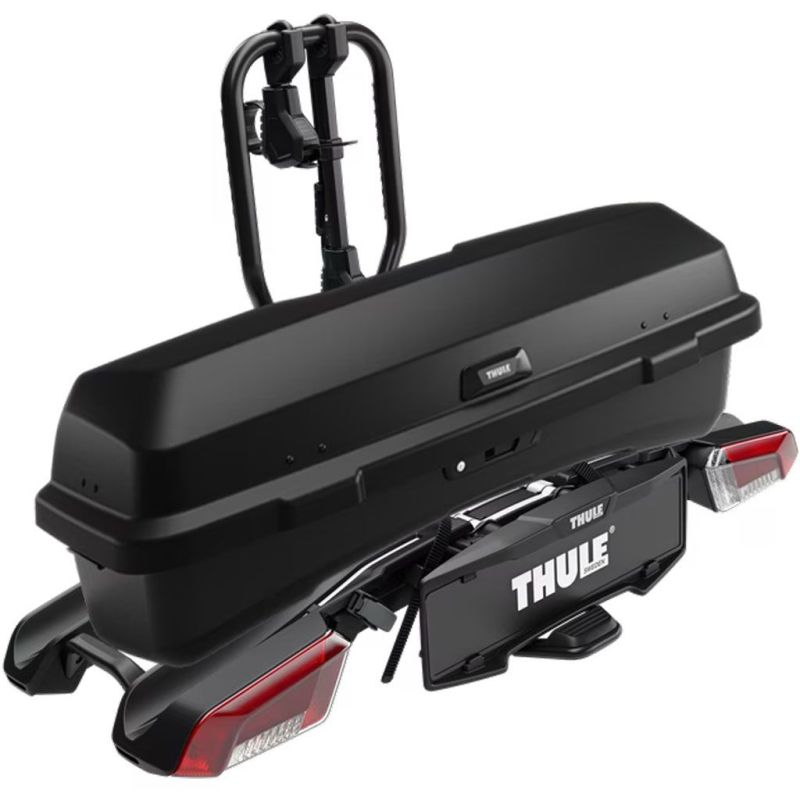 přepravní box na nosiče kol na tažné zařízení Thule EasyFold 3 / Thule EasyFold XT / Thule Epos, umožňuje přepravovat kola / náklad / obojí (pouze s Thule Epos)