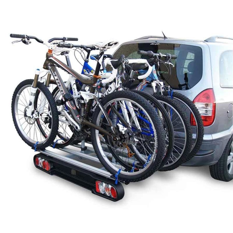 vhodný pro kola bez příčné rámové trubky / štangle, umožňuje používat na nosičích na tažné zařízení nebo na zadní / páté dveře jako upevnění za rám