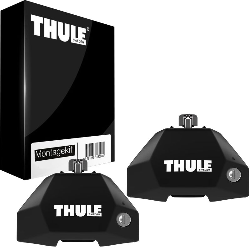 sada 2ks patek pro střešní nosiče, černá barva, pro tyče Thule Evo, na vozidla s integrovanými pevnými montážními body / profilem T / upevňovacími body nosiče namontovanými na míru