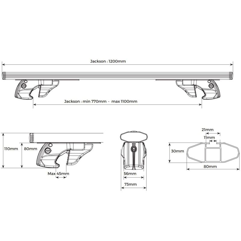 sada adaptérů pro montáž střešního nosiče kol Thule UpRide 599 na ocelové nebo oválné hliníkové příčníky, maximální rozměr tyče 58x30 mm, sada pro 1 držák kola