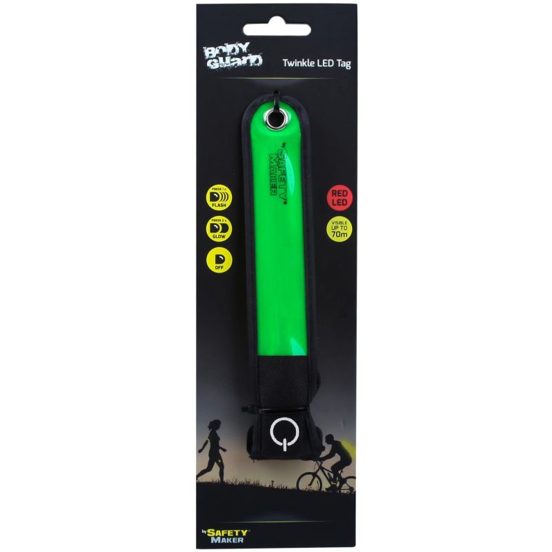 výrazně zvyšuje bezpečnost, viditelnost až 70m, umístění na ruku přes oblečení, vestavěné LED diodové osvětlení