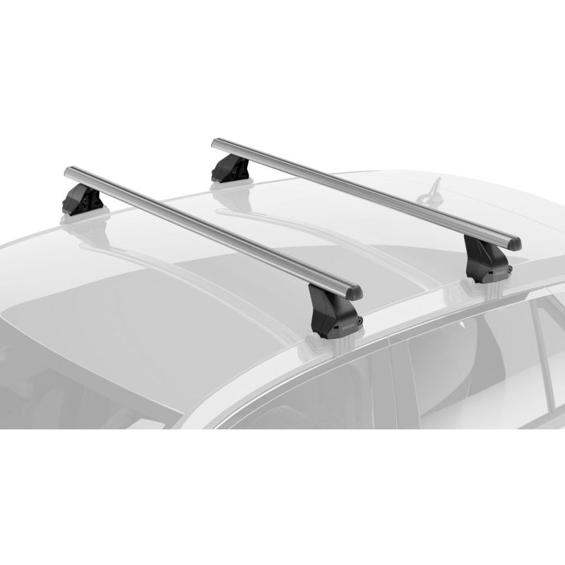 přesná sestava 2 tyčí z aluminia s délkou 130cm, 4ks patek, fixační kit k vozidlu, uzamykatelný systém, možnost použití T-šroubů Thule s plochou hlavou 20x20mm
