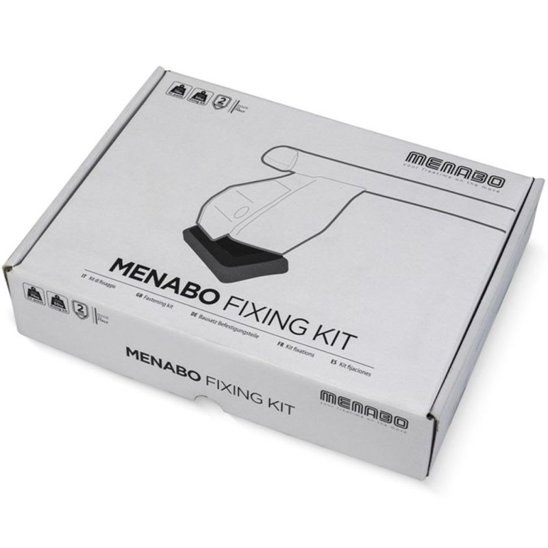 sada 2 tyčí z aluminia s délkou 112cm, určené pro přesnou typovou sestavu střešního nosiče Menabo Omega Plus, 4ks univerzálních patek, vylepšená aerodynamika
