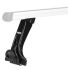 aluminium, jedinečný třídrážkový design pro montáž více různých příslušenství, sada obsahuje 2 nosné tyče s patkami a uzamykatelným systémem, možnost použití T-šroubů, montáž do dešťového žlábku na okraji střechy