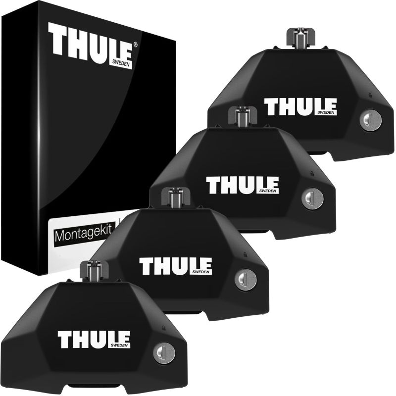 Kompletní systém střešního nosiče obsahuje 4 snadno namontovatelné patky nosiče a 2 nosné tyče Thule SlideBar