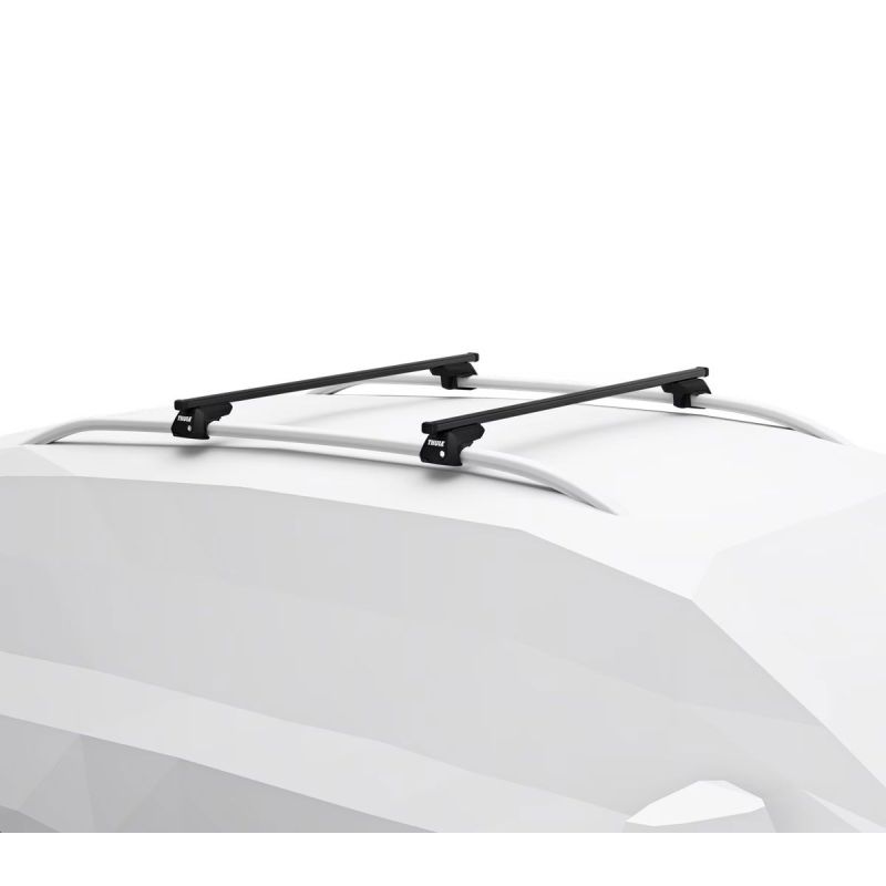 Kompletní univerzální nosiče na zvýšené střešní podélníky včetně patky, zámků a tyčí Thule SquareBar