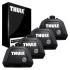 Kompletní systém střešního nosiče obsahuje 4 snadno namontovatelné patky nosiče a 2 nosné tyče Thule SquareBar