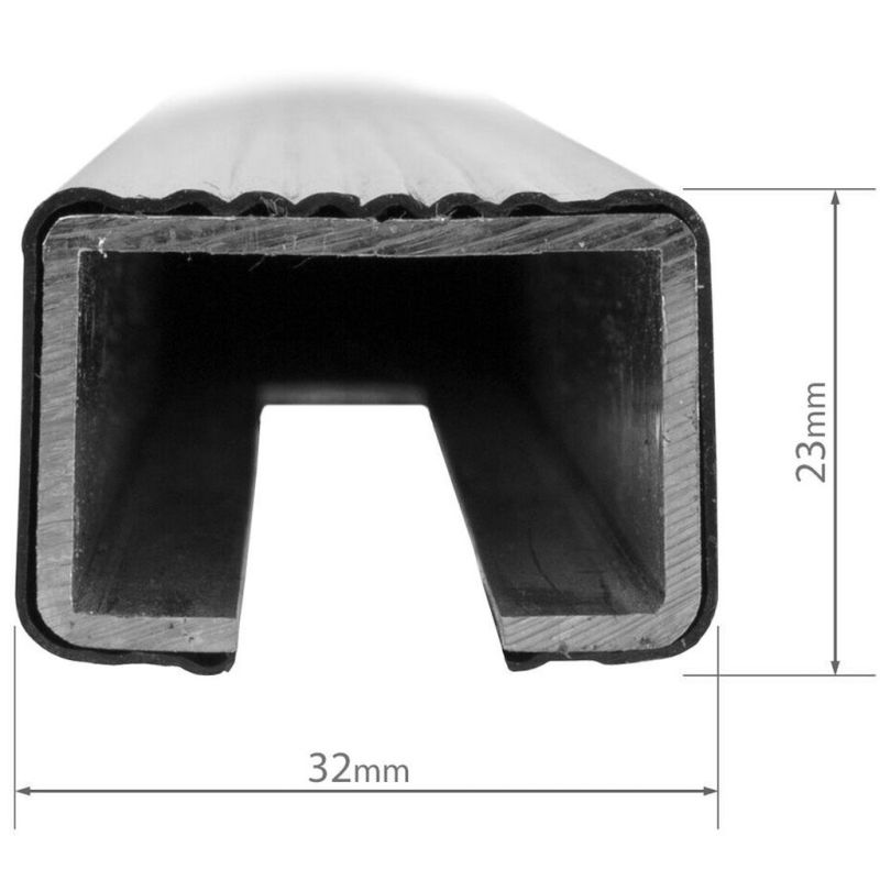 ocelový střešní nosič, tyče s hranatým průřezem opatřenými černým polymerovým povlakem, sada obsahuje 2 nosné tyče s patkami bez uzamykání, montáž na integrované podélníky bez mezery mezi podélníkem a střechou