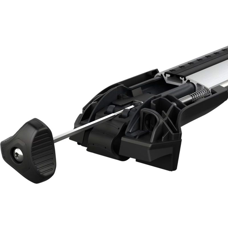 kompletní špičkový moderní aluminiový aerodynamický střešní nosič pro výjimečně tichou jízdu a snadnou montáž příslušenství od renomovaného švédského výrobce, sada obsahuje 2 nosné tyče s patkami a uzamykatelným systémem, možnost použití T-šroubů, stříbrná verze