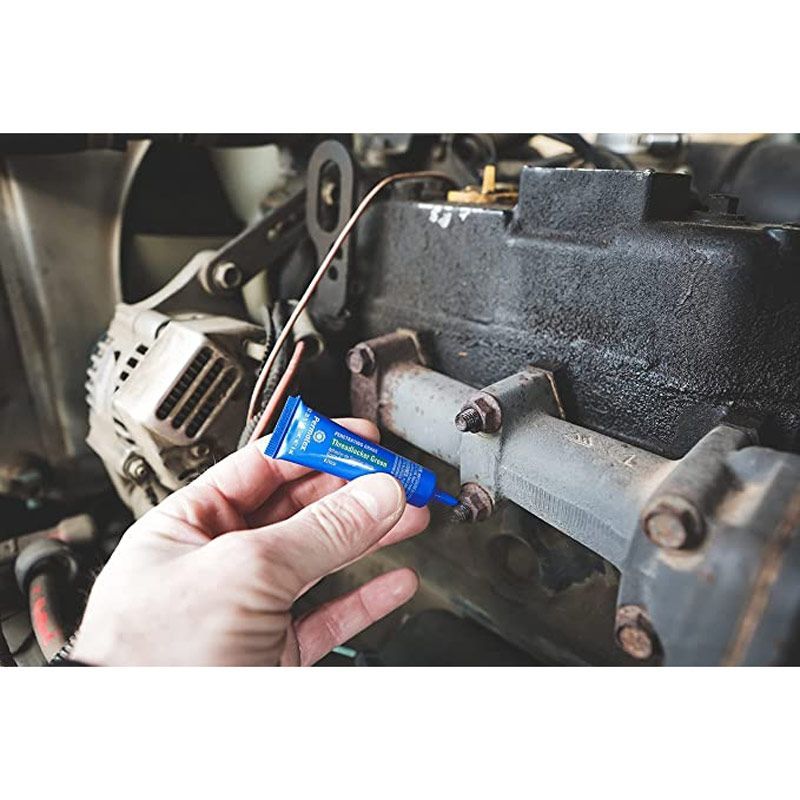 středně pevný materiál pro zajištění závitů, vytvrzuje, zajišťuje a těsní mezi závitovými spoji, odolává povolování závitů, úniku kapalin, nárazům a vibracím